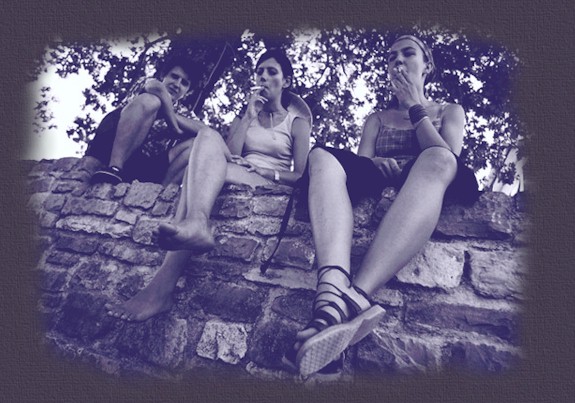 Zapaliły papierosy,